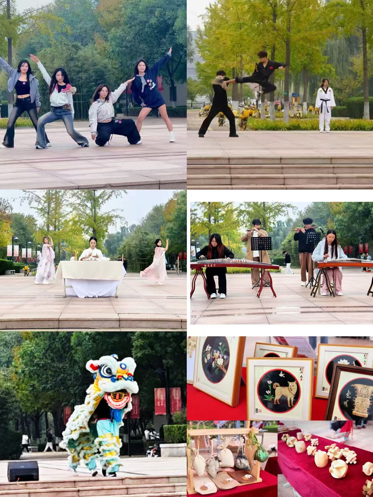 活动现场,各学生社团精心布置展位,通过展板展示、成果陈列、现场表演、互动体验等多种形式,全方位展现社团特色与活力。舞蹈社团以一段动感十足的街舞点燃全场;武术协会的拳术表演刚劲有力、虎虎生风;音乐类社团轮番登台,吉他弹唱、器乐合奏余音绕梁;科技创新类社团则现场演示机器狗操作、无人机飞行,展现城建学子的智慧与创造力;传统文化类社团同样大放异彩,书法社挥毫泼墨,即兴书写作品赠予新生;剪纸社等通过非遗技艺展示,让同学们近距离感受中华优秀传统文化的魅力;志愿服务类社团通过图文并茂的展板,讲述公益故事,传递奉献精神,激发青年责任担当。